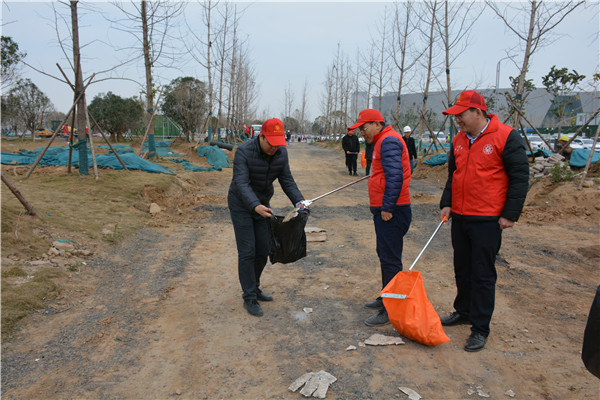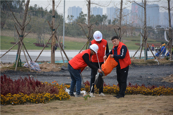 上午十時三十分,志愿服務活動開始后,集團公司黨委委員、副總經理、項目部總經理汪洋親自帶頭參加活動,其他黨員干部帶頭干,職工群眾積極干,參建單位負責人志愿加入干,大家拿起工具、彎下腰去,撿起草地上的生活垃圾,集中放進現場放置的垃圾桶內;沒有拿到工具的同志們也拿起簡易垃圾袋,將撿到的生活垃圾放進垃圾袋盛滿后再放進垃圾桶內。一時間,黨徽熠熠、愛心閃閃、干勁滿滿,不到一個小時時間,約20人的志愿服務隊伍完成了近20000平米區域的垃圾清理任務,景觀施工現場面貌大為改觀。