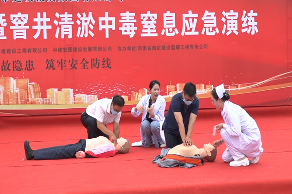 五是開展應(yīng)急演練活動。6月23日下午,集團公司市政建設(shè)管理中心在杏賈路市政道路施工現(xiàn)場開展一次窨井中毒窒息應(yīng)急救援演練活動,參加人員共計100余人,涉及公司所有在建市政工程項目參建單位。演練模擬污水井清淤作業(yè)意外中毒為背景展開,并邀請鄭大一附院兩名專家進行急救知識講解和心肺復(fù)蘇教學(xué),取得了非常好的效果